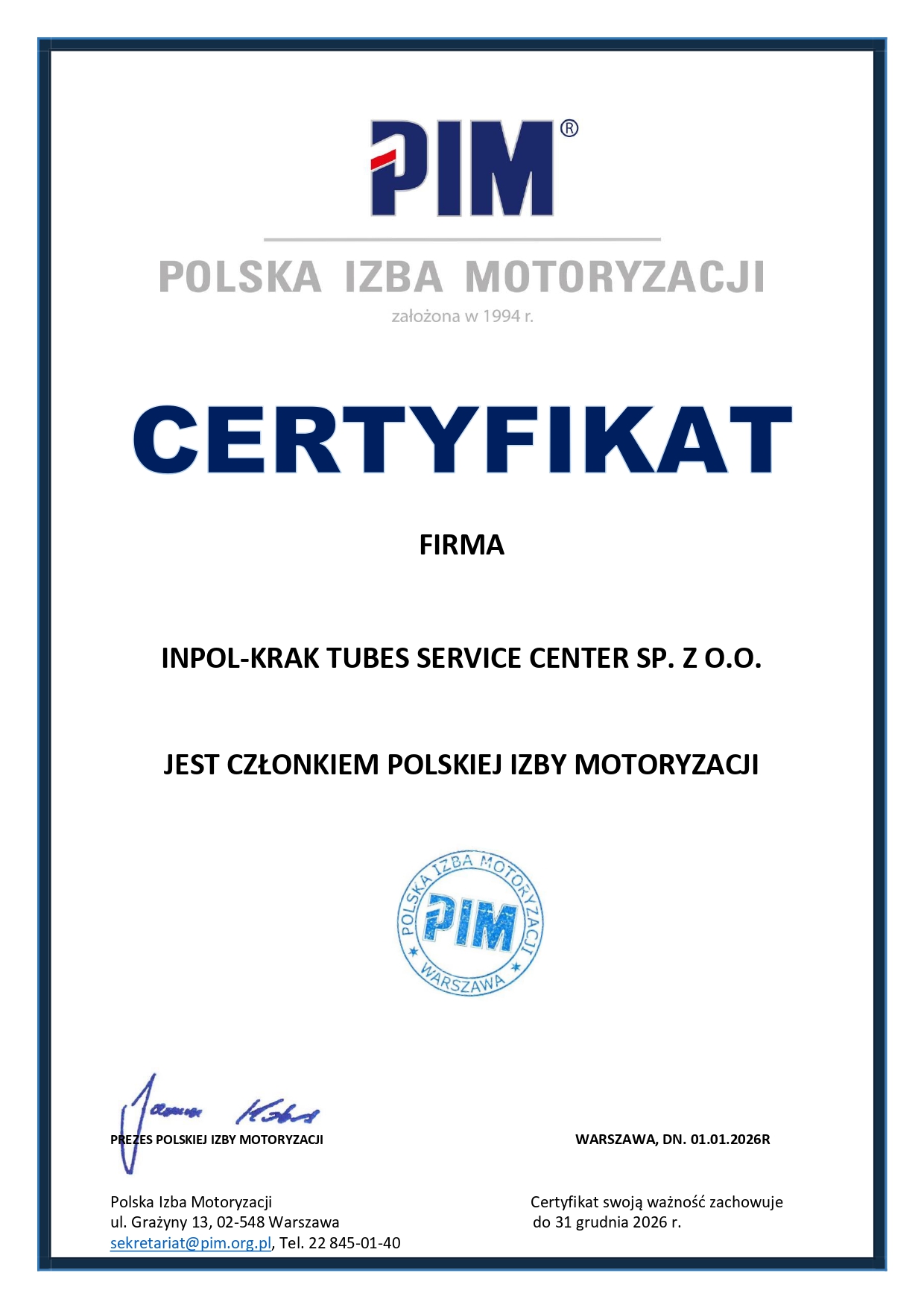 Certyfikaty Inpol-Krak